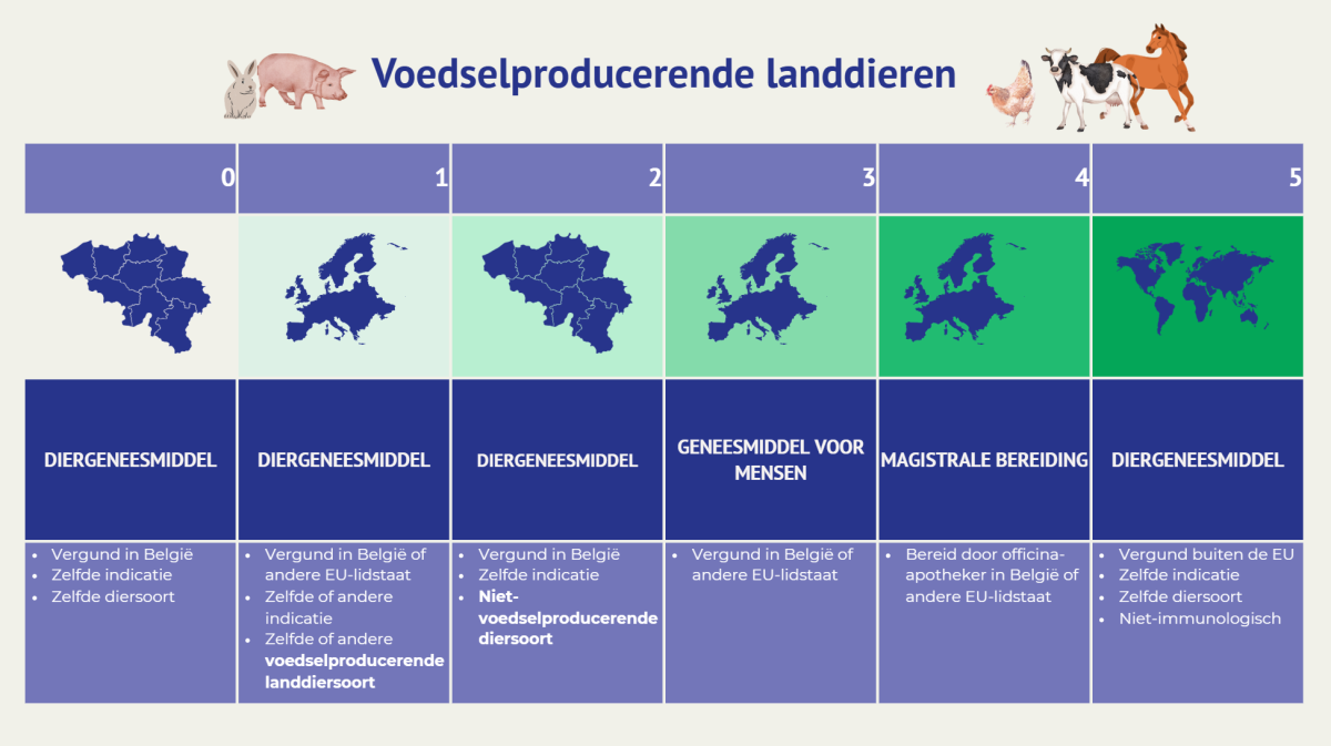 Samenvattend zien de cascaderegels voor voedselproducerende landdieren er als volgt uit